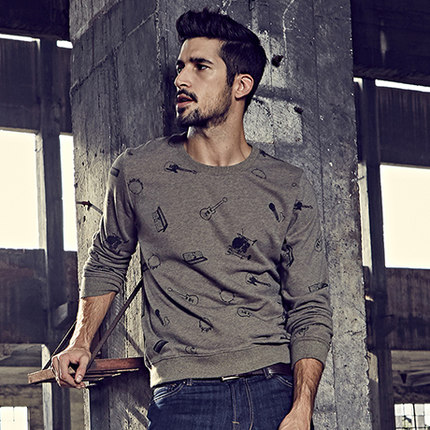 【双11爆款】all in 印花套头卫衣男韩版圆领修身长袖T恤潮流休闲