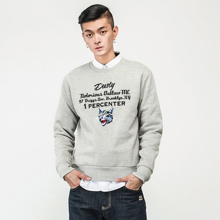 【双11爆款】DUSTY潮牌男装秋季圆领套头浅灰色加绒卫衣原宿