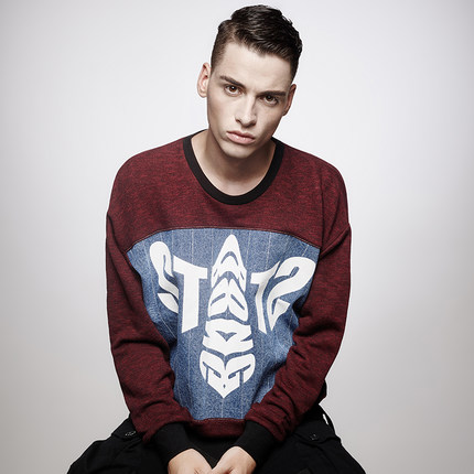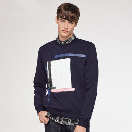 【双11爆款】all in几何图案男士圆领套头卫衣黑色修身潮男外套