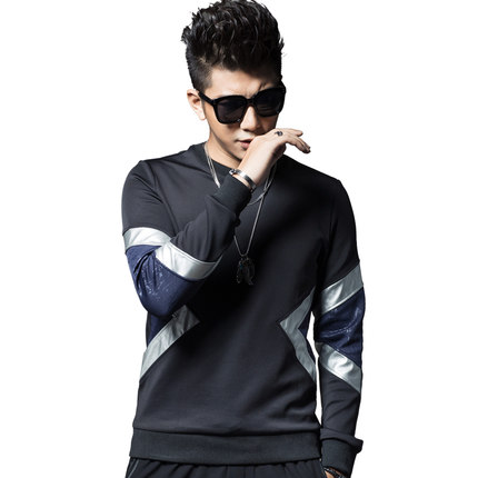 【双11爆款】all in 拼接套头卫衣 韩版修身T恤男 青年潮牌圆领