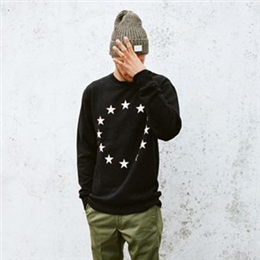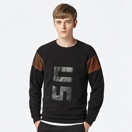 【双11爆款】UOOHE太空棉贴布装饰卫衣男 欧美圆领套头卫衣