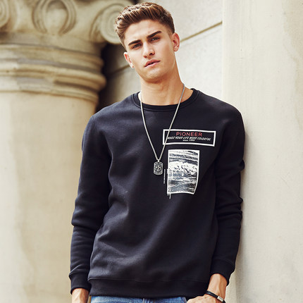 【双11爆款】拓路者字母印花长袖套头加绒加厚运动卫衣男韩版潮
