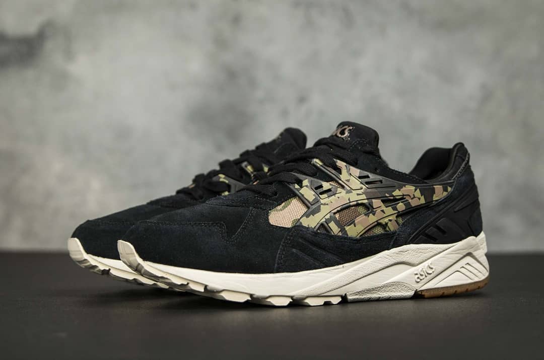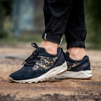 这款ASICS Gel Kayano Trainer以黑色的麂皮包裹鞋身,迷彩图案仅呈现在两侧的虎爪纹LOGO图案处,可以说是低调却又不俗的一款迷彩设计配色。最后搭载白色中底与橡胶外底,相当百搭。