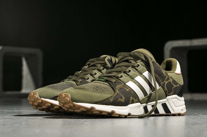 此番亮相的是 adidas EQT Support RF “Green Camo” 配色,鞋身整体主色调由迷彩与深绿色相间构成,鞋面则由麂皮同织物面料相结合打造而成,adidas 招牌的三道杠以白色呈现在鞋身外侧,鞋跟后方则以白粉作为清新点缀,整体鞋款霸气十足但又不失清新脱俗!